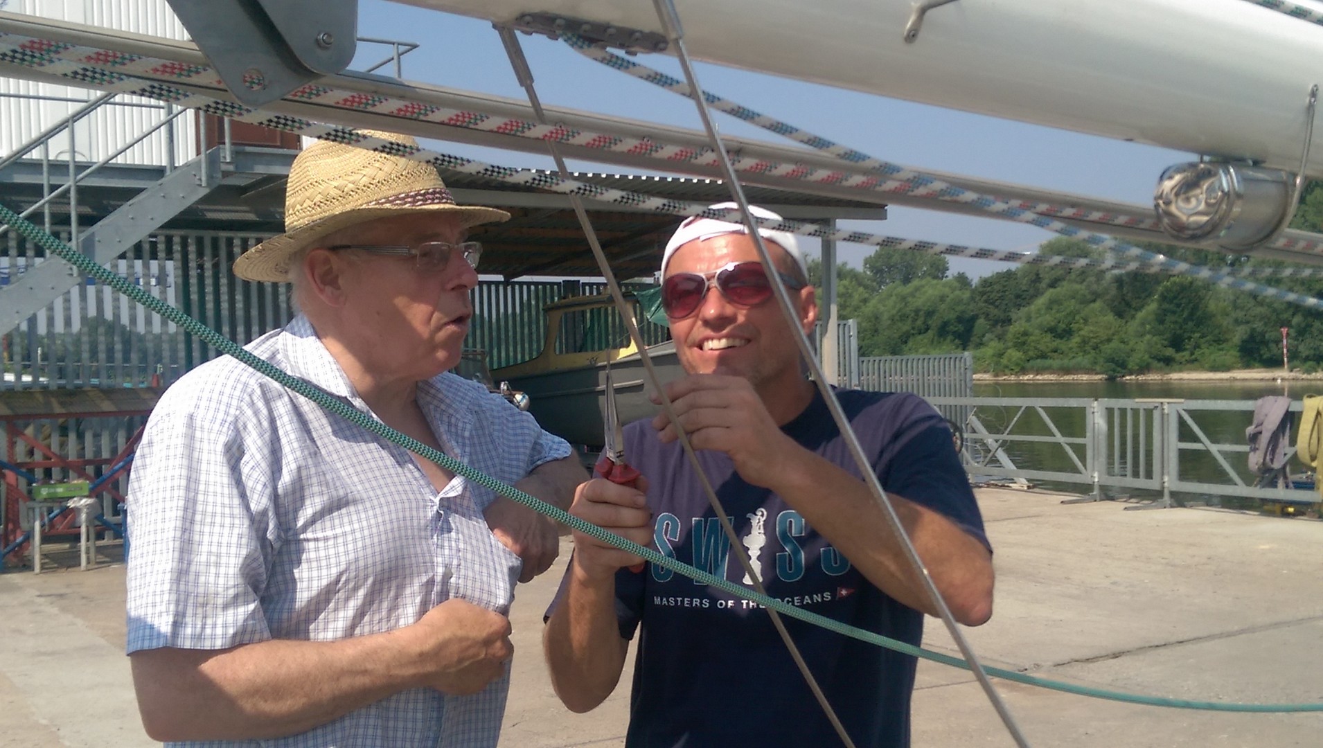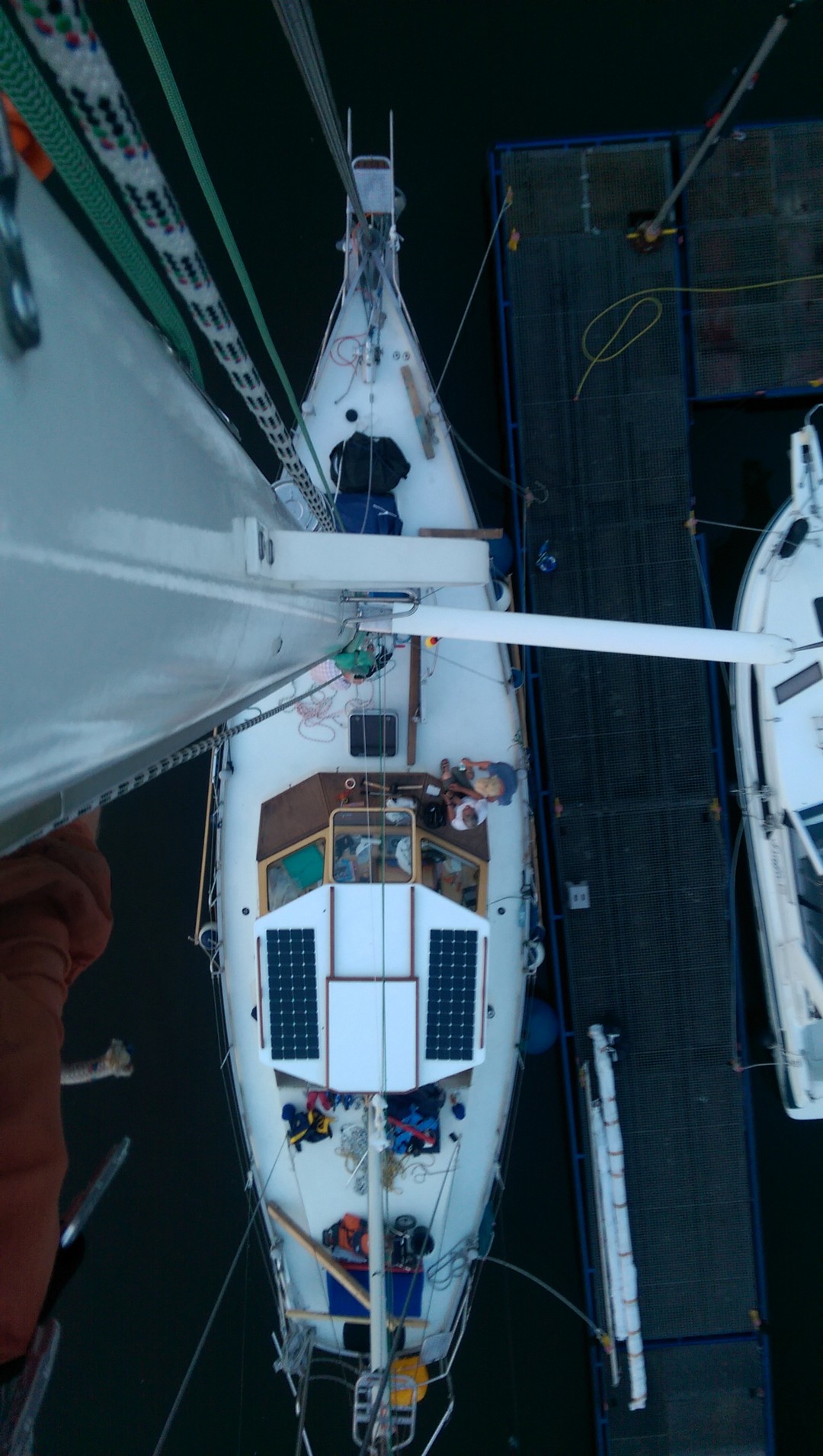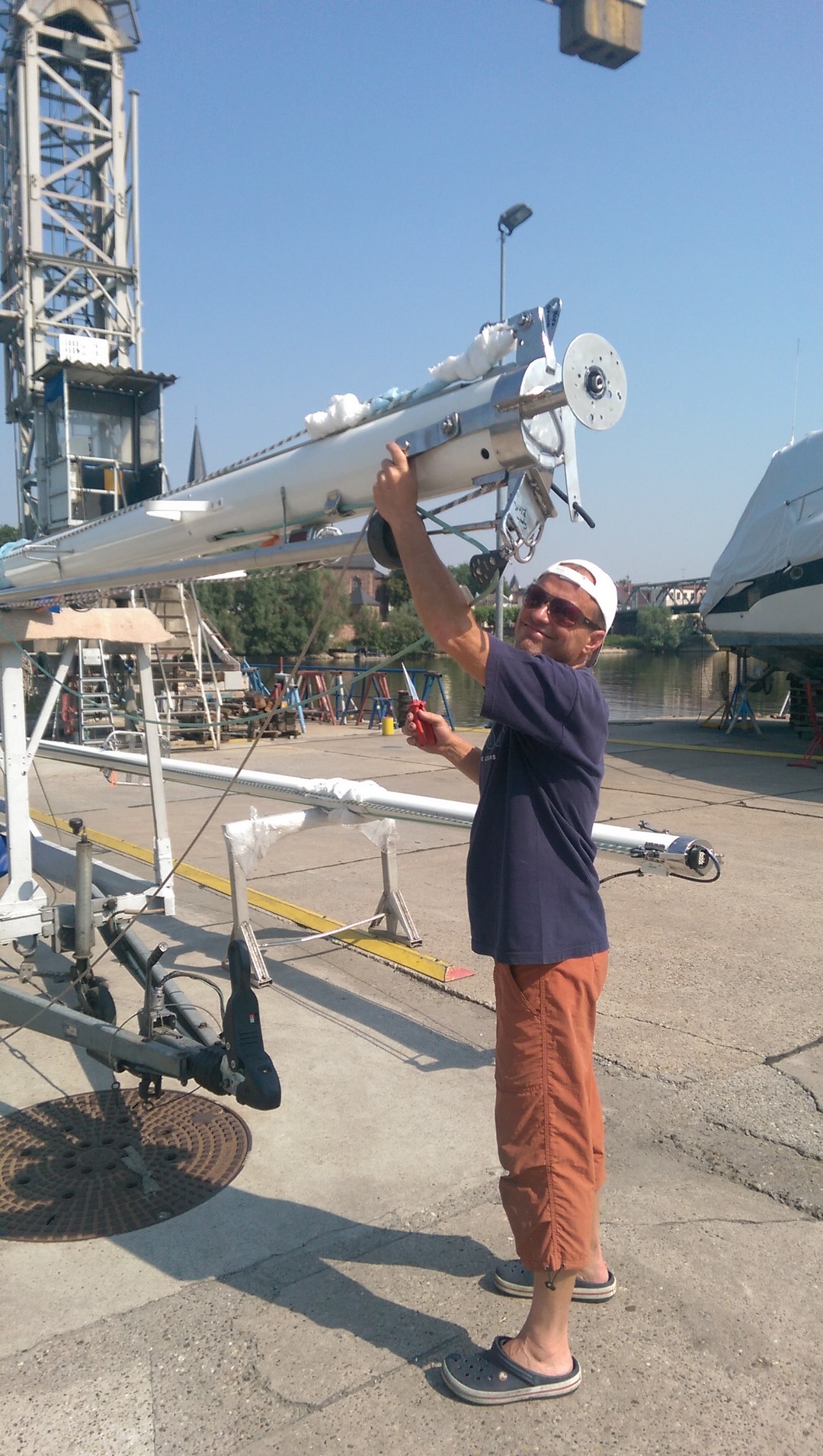 Dank Georg konnten die original Masten restauriert werden, das letzte Puzzleteil fügt sich in das Gesamtbild der Yacht ein.Es waren zwei harte Arbeitstage für alle. Mit viel Hilfe von der Werft Winkel und Rehorst und der professionalität von Georg konnten die Masten gestellt und wieder gelegt werden. Die Wandten waren beim Kranen gut führbar. Sie liesen uns erkennen was es bedeuten würde wenn auf See die Notwendigkeit besteht das Rigg kappen zu müssen un sich vom Mast zu trennen. Es sind unberechenbare Geschosse die durch dir Luft wirbeln.