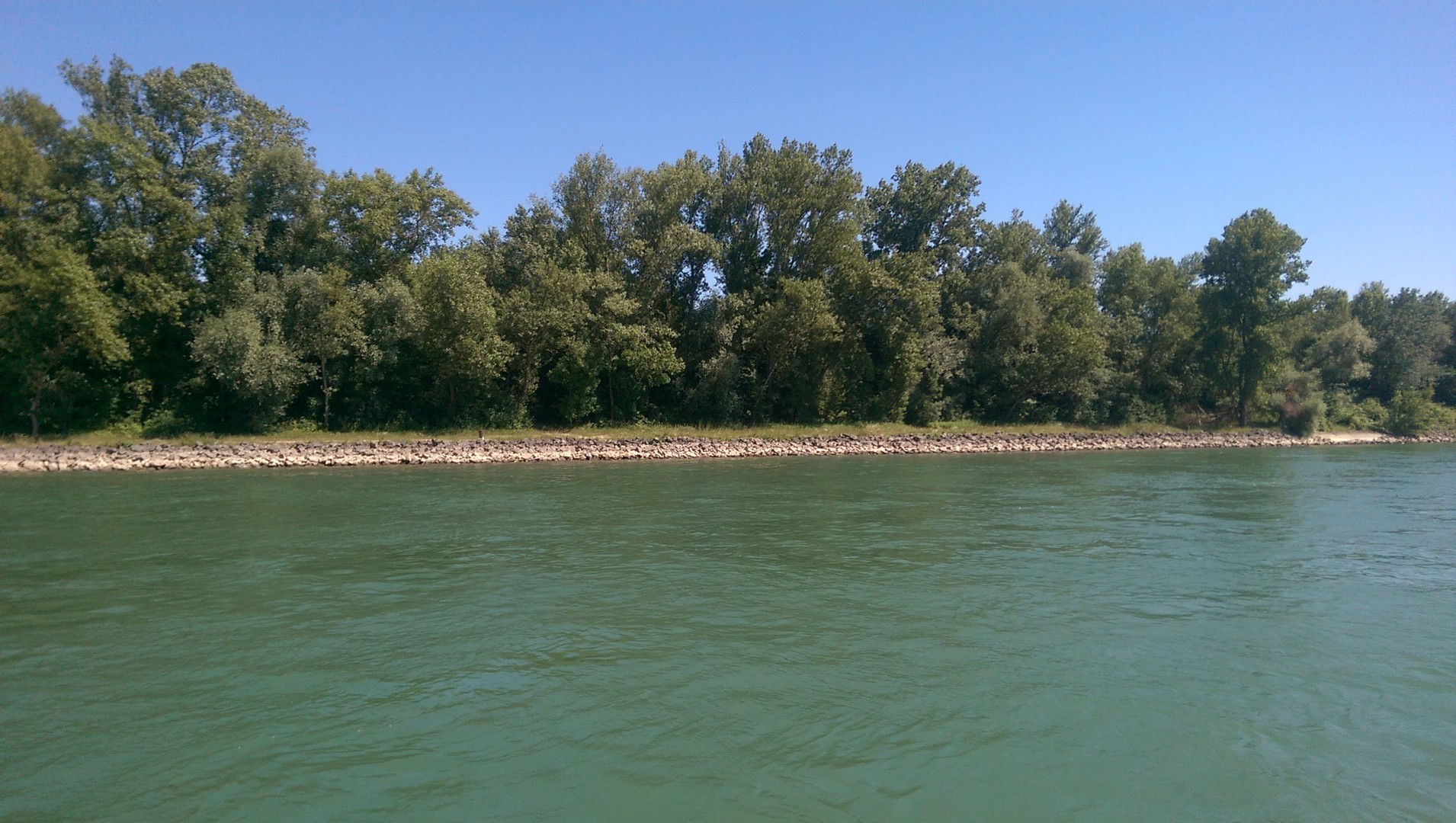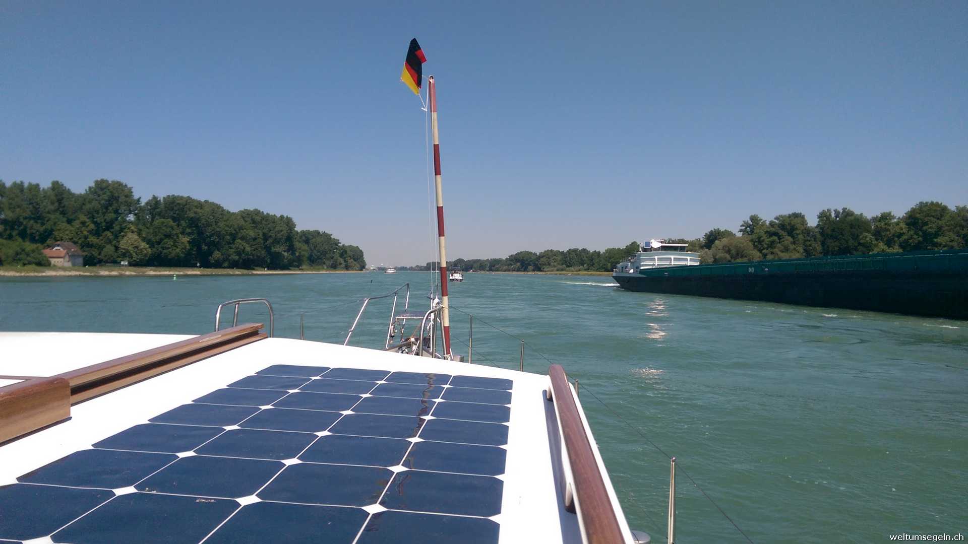 Bei der letzten Schleuse Iffezheim beschleunigt der Rhein unsere Fahrt auf bis zu 10 Knoten Fahrt.So kommen wir zügig voran.