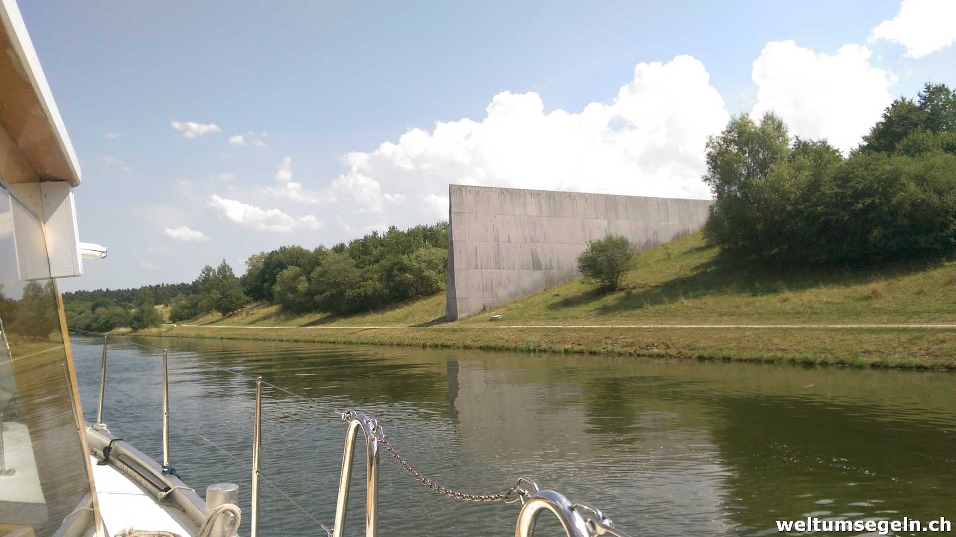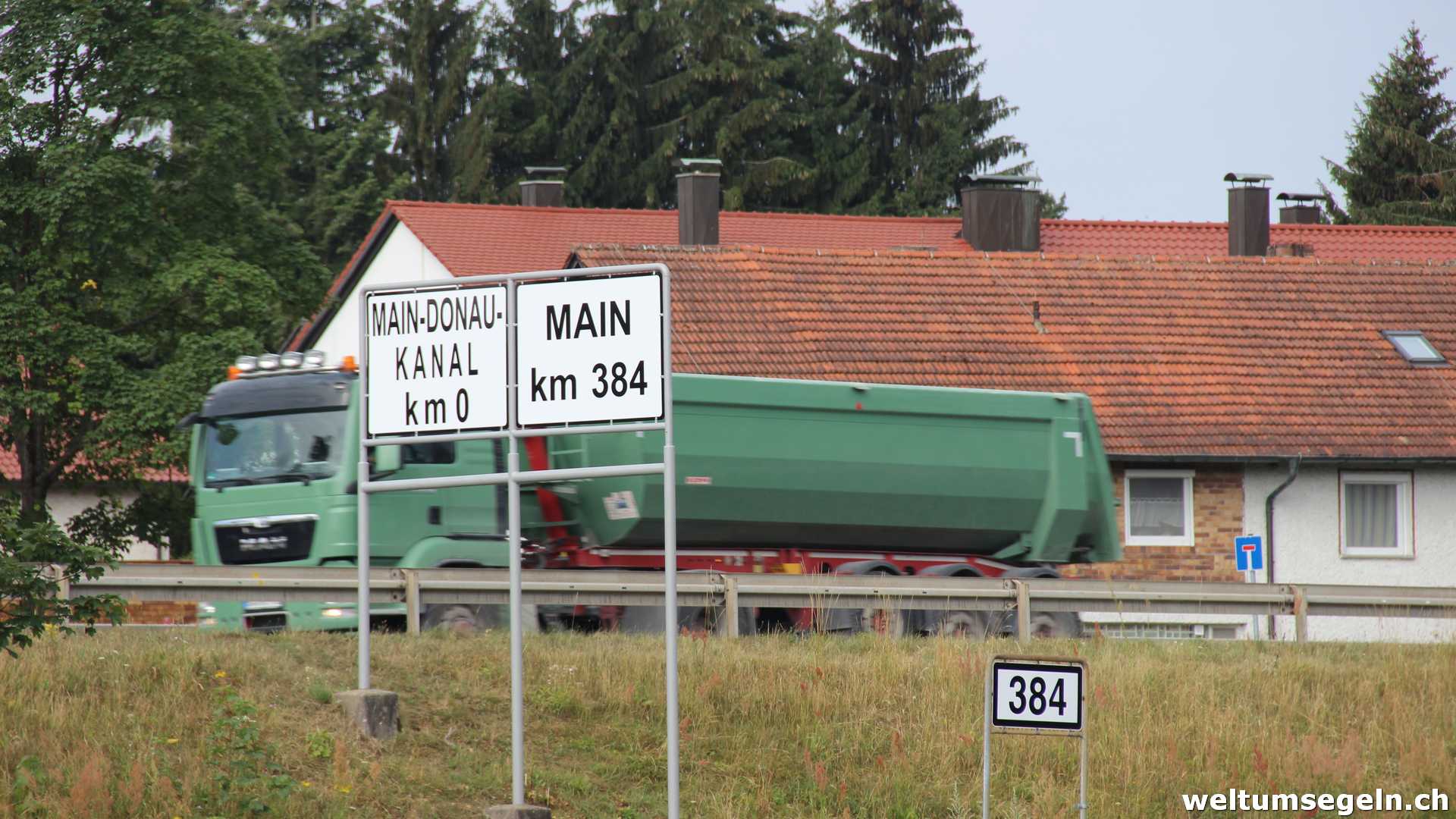 Bei Bamberg kommt die 0 km Tafel für den Main - Donau - Kanal in dem wir weiter fahren werden. Mit und ohne Wasser im Schiff.