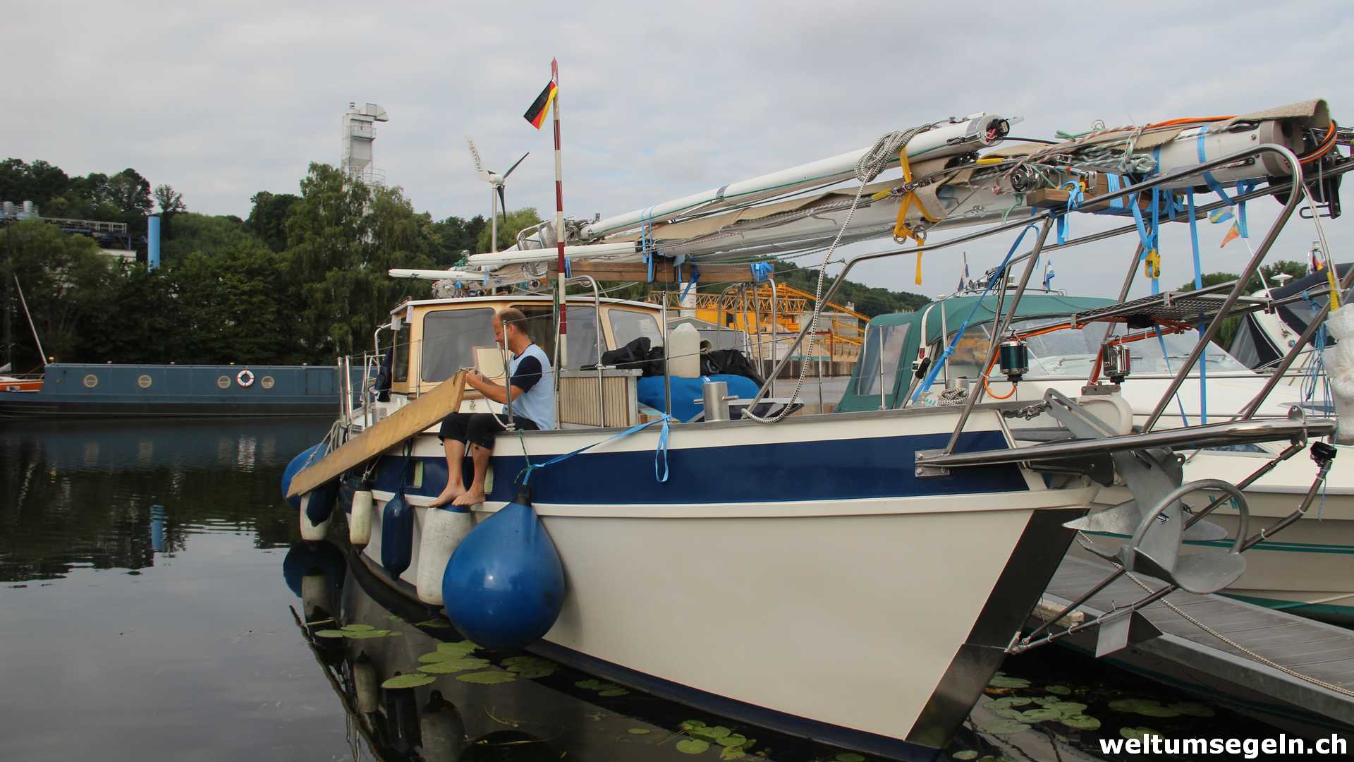 Toller Hafen. Reinfahren und direkt geradeaus an den Steg zum Anlegen fahren. Festmachen und Bierchen trinken gehen.