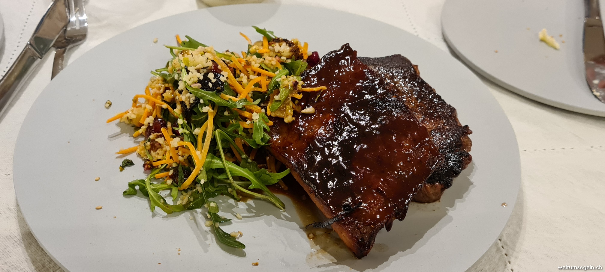 Fantastic also Mags organized for the 25.12. an exclusive Canadian Dinner with Arni and Jane on the Amel 50.