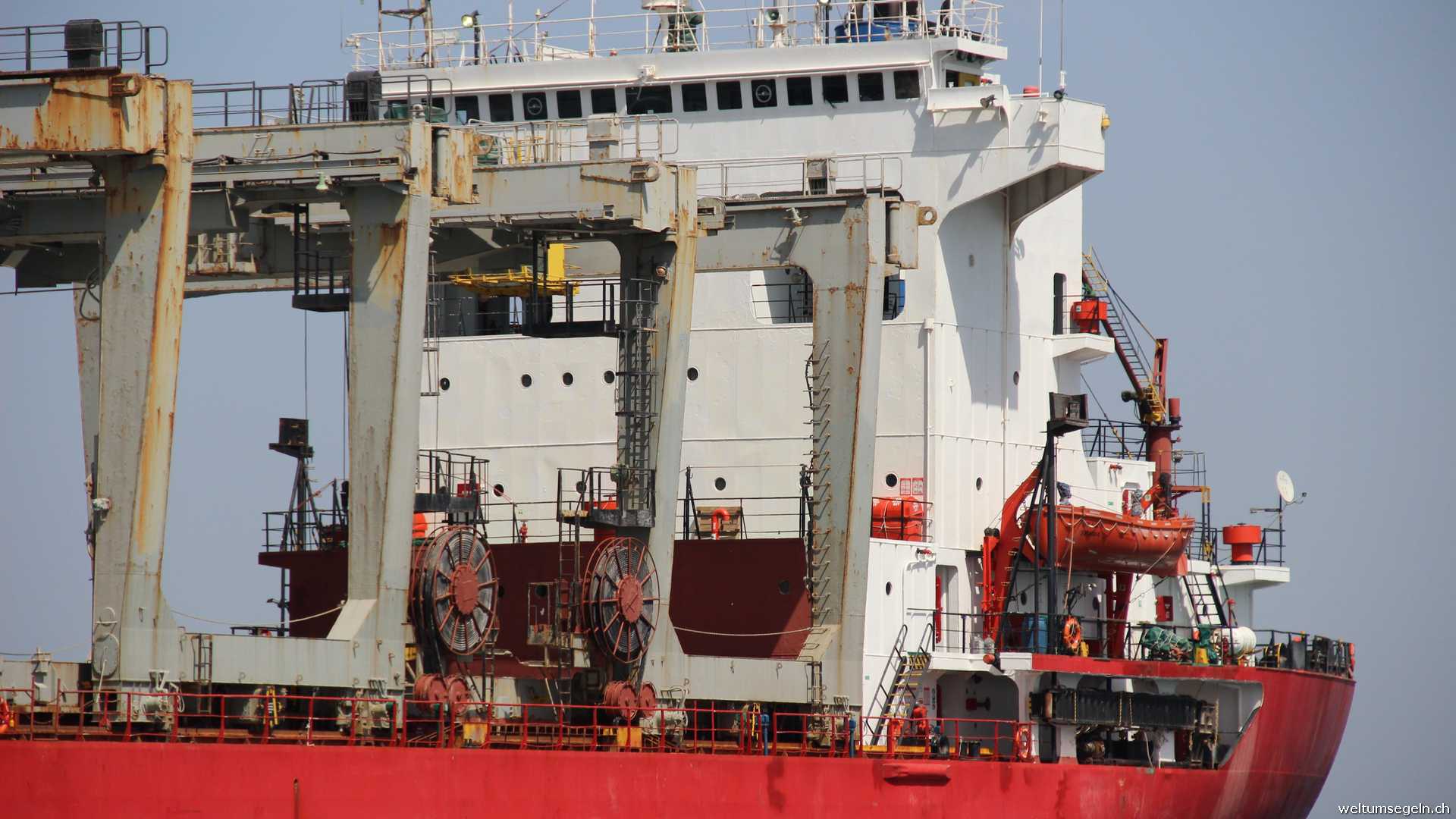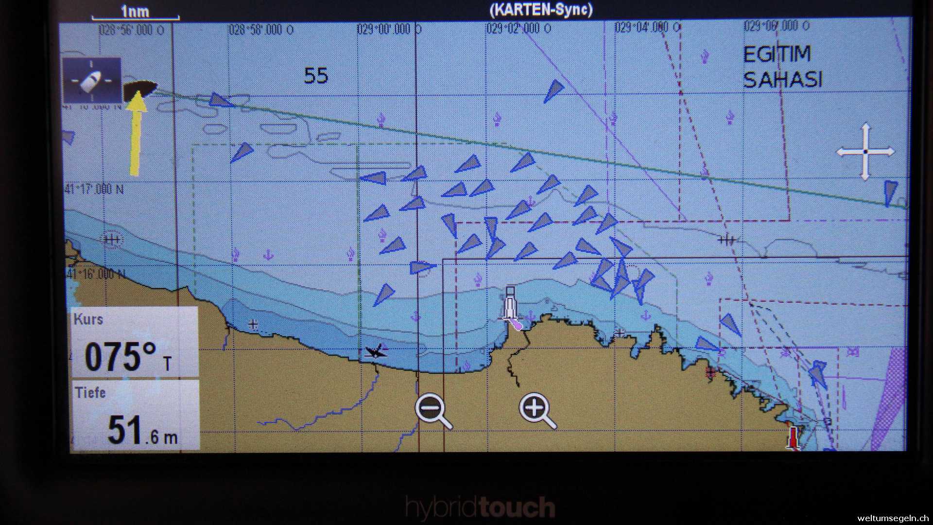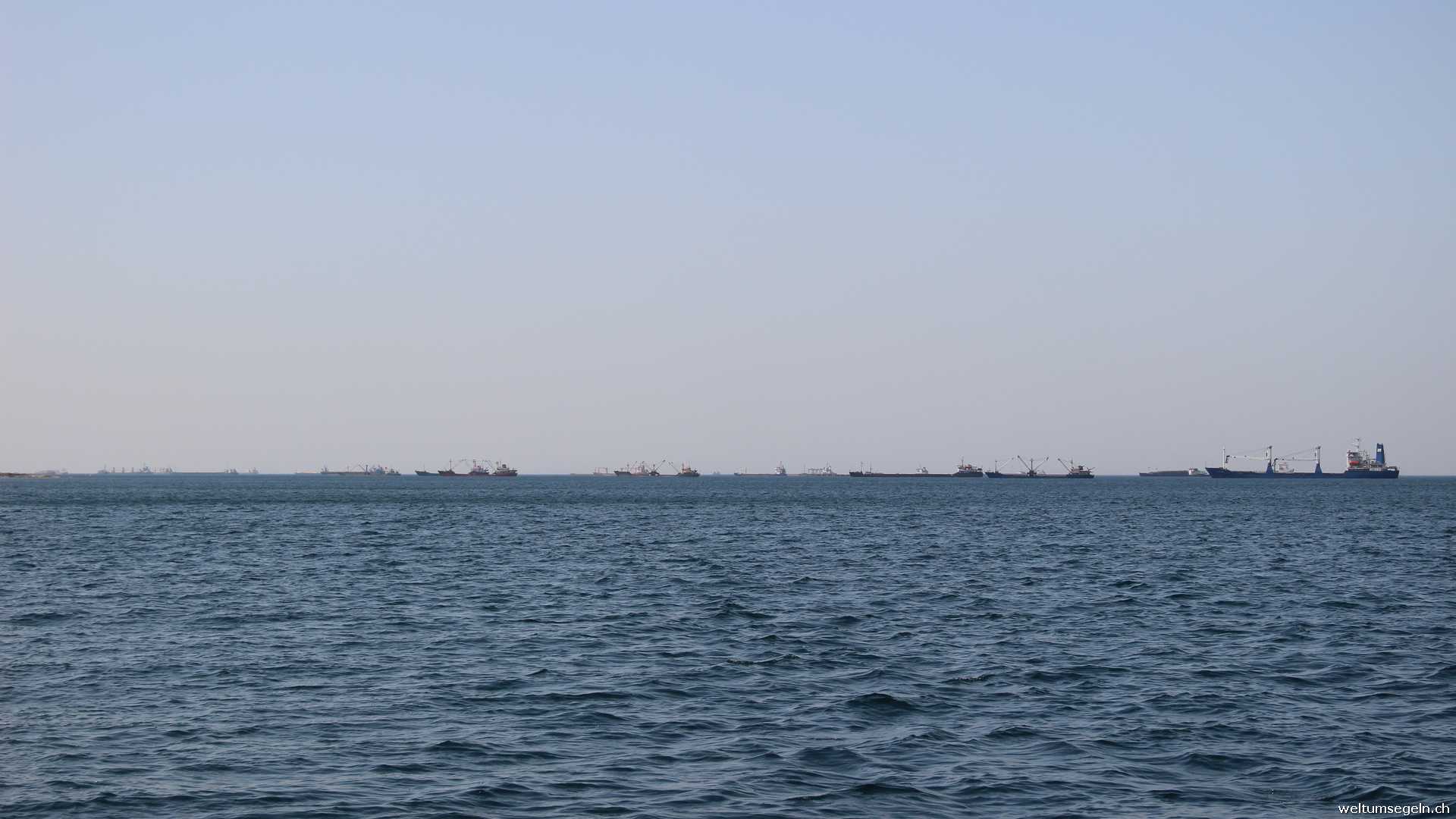 Gemütlich verlassen wir die Bucht in Richtung Bosporus. Endlich haben wir Wind.Mit angeschlagener Sturmfock , Groß im ersten Reff und Besan im zweiten Reff düsen wir die Küste entlang.Boen bis 32 km lassen sich so mit viel Spaß segeln. Der aufgewirbelte Sand des Sandsturmes brennt in den Augen, das gleisende Licht der Sonne stellt die Sonnenbrille auf die Probe.Endlich Segeln. Mit bis zu 5.8 Knoten Fahrt kommen wir gut vorwärts. Hubi lässt sich den Spaß nicht nehmen und segelt zickzack durch das vorliegende Ankerfeld mit über 50 Cargo schiffen bis zur Einfahrt des Bosporus. Glücklicherweise gehen deren Ankerketten senkrecht ins Meer.