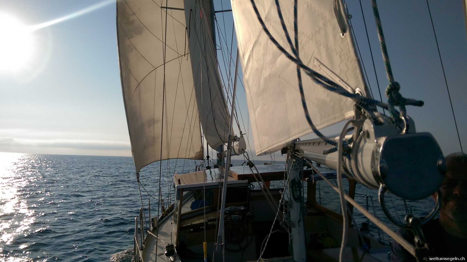 30 sm bei ablaufender Dünung mit spiegelglattem Meer dreht der Motor seine Umdrehungen. Keine Chance heute auch nur annähernd an Segeln zu denken.
