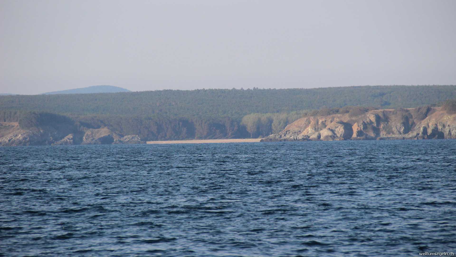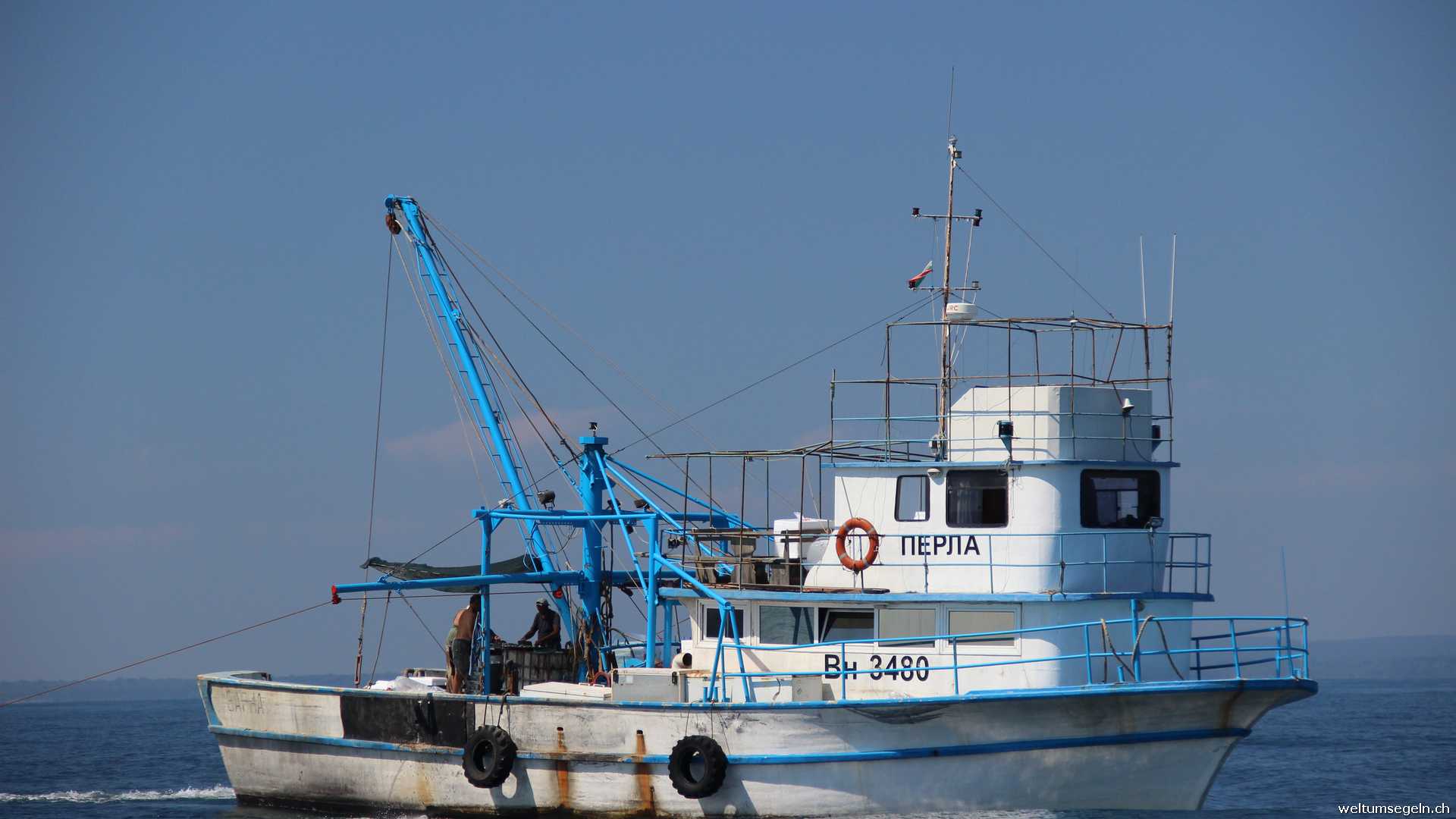 Am nächsten morgen geht es früh weiter in Richtung Nesebar. Es liegen 60 sm vor uns die wir mal wieder unter Motor und gesetztem Groß sowie Besan entlang der Küste abfahren. Im Verkehrstrennungsgebiet begegnet uns ein Seeschiff. Auch so ist nicht viel los auf dem Meer.Ein Fischer der schleppt fährt an uns vorbei.