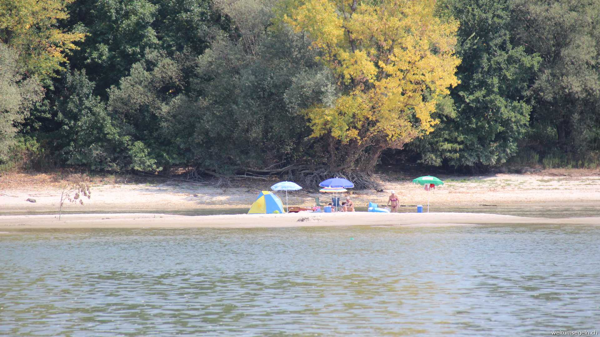 So begnügen wir uns mit einem kühlen Drink, beobachten vom Schatten aus das üppige Treiben in dem Bad und verlassen es nach kurzer Zeit wieder. Immerhin hatten wir eine Dusche zur Abkühlung.